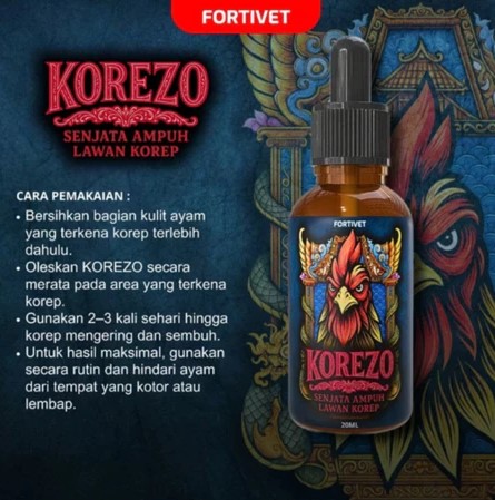 Dengan KOREZO, ayam aduan Anda akan terbebas dari penyakit kulit dan terlihat lebih sehat serta terawat. Gunakan secara teratur untuk hasil maksimal!